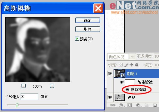 9、再对它执行菜单/滤镜/模糊/高斯模糊,半径为4个象素,素描效果就OK了。