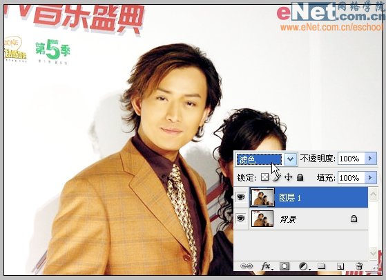 17、原图光线比较暗,所以Ctrl J复制一层,图层混合模式改为“滤色”,立刻变亮了。