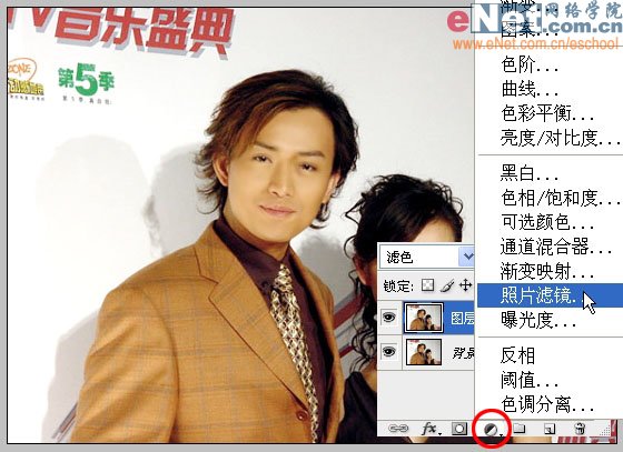 19、图片还有点偏黄,点红圈内按钮选择“照片滤镜”。