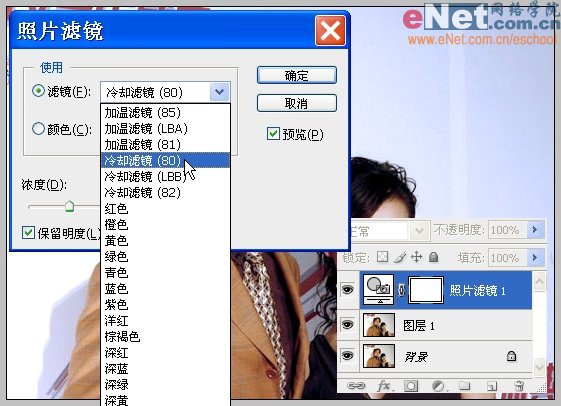 20、选择“冷却滤镜(80)”。