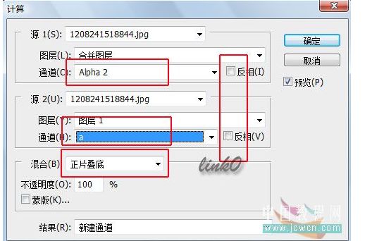 菜单-图像-计算如下图,得到alpha4通道。初步得到绿选区。