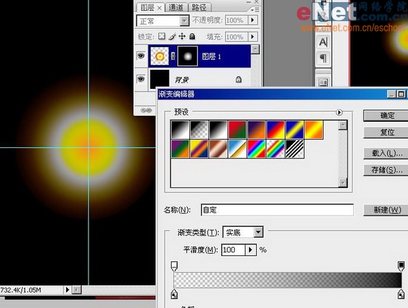 调好渐变工具的颜色,从圆心开始渐变。