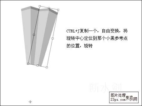 4、按Ctrl J把作好的单页复制一份,按Ctrl T变形把中心点移到参考点上,旋转。