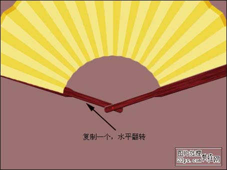 8、复制一个防到左边,选择菜单:编辑 > 变换 > 水平翻转,确定后把图层移到扇子的下面如下图。
