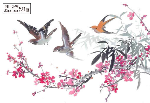 11、打开一张素材图,拖进来,把图层混合模式改为“正片叠底”,并把多余的部分删除,再加点背景效果收工。