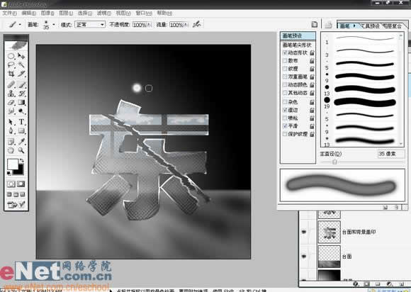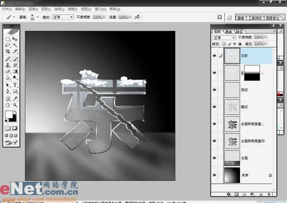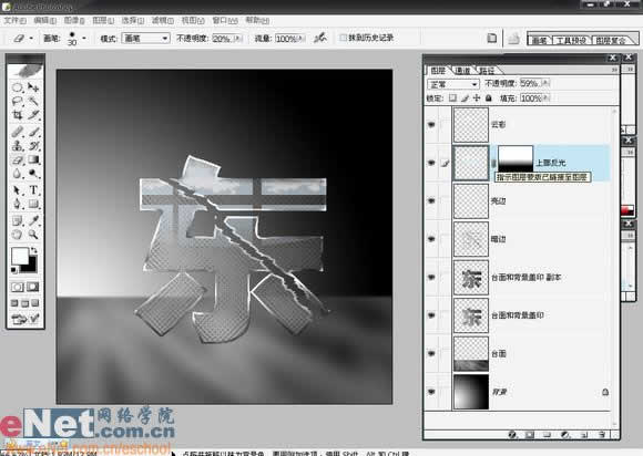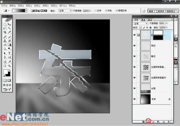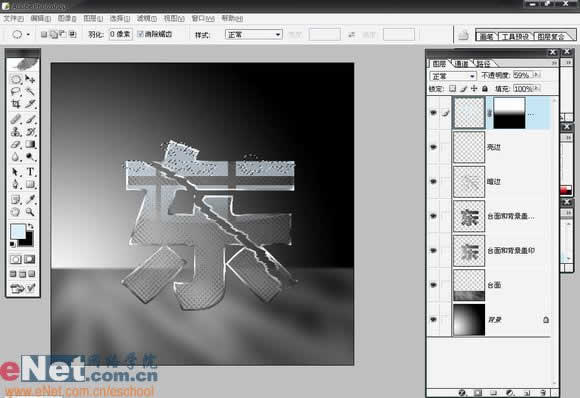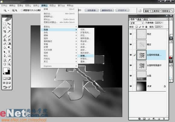 十三、用橡皮檫工具,在亮边层上不断轻擦,以露出后面的暗边,模仿出玻璃边复杂的光感。