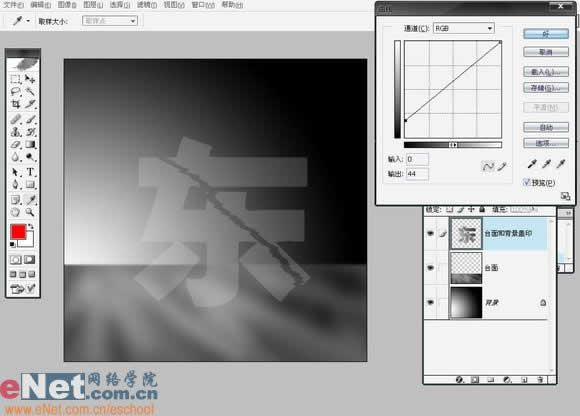 九、在盖印层上,按“ctrl m”调出曲线对话框,如图调节,得到微微变亮的“东”字。