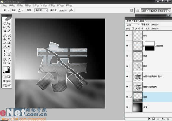 五、将“台面”层进行大致的光效处理。可以使用“加深”、“减淡”工具。