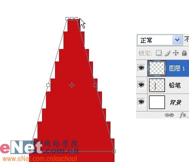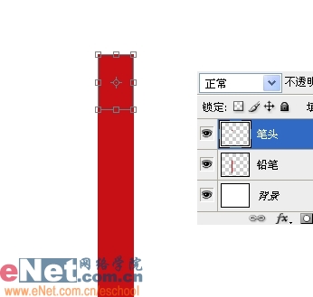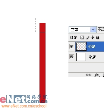 2、Ctrl Enter转路径为选区,新建一个图层,命名为铅笔,设前景色为深红色,Alt Delete填充。
