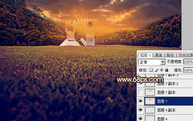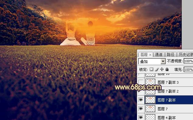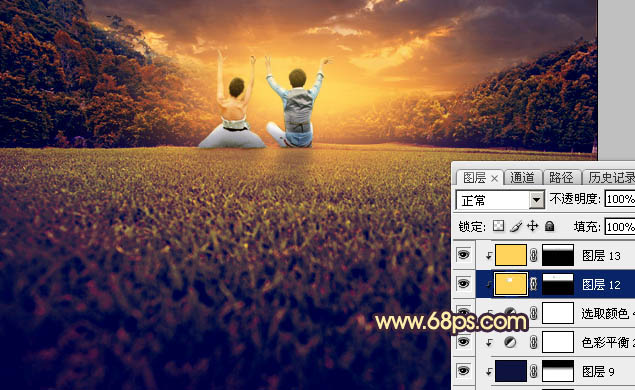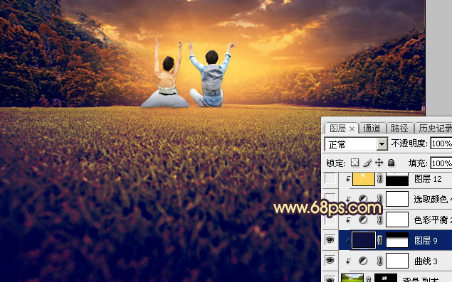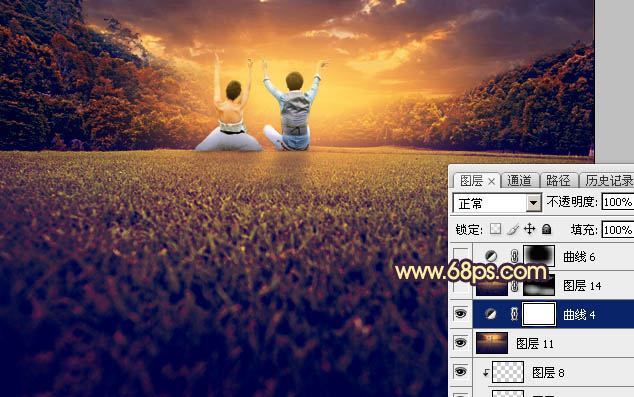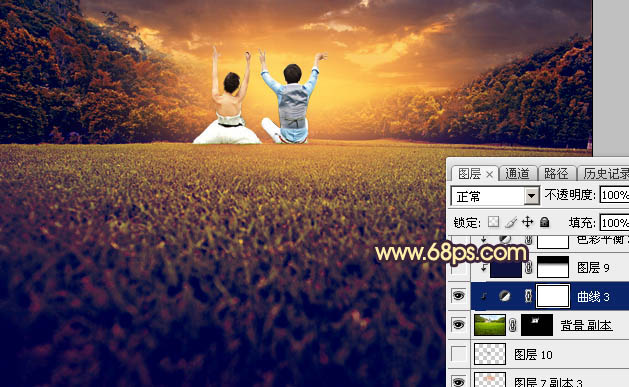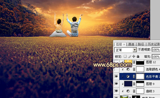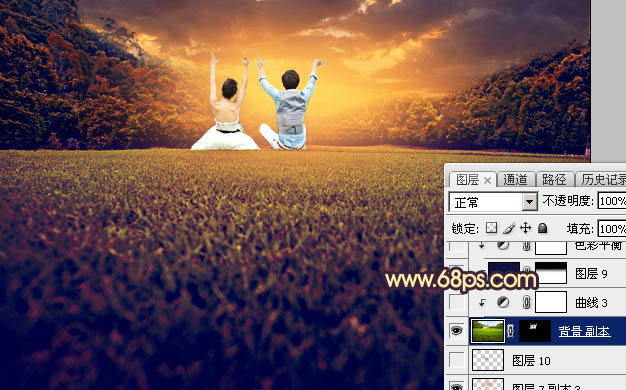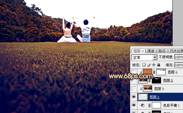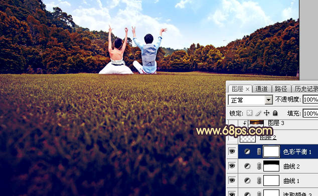 Photoshop调出灿烂的秋季晨曦色草地上的情侣图片