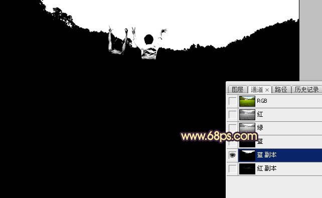 按住Ctrl + 鼠标左键点击蓝副本通道缩略图载入选区。