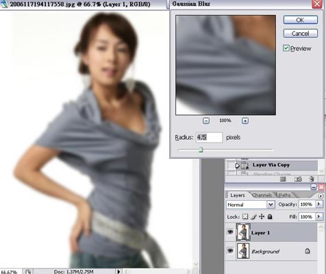 2.給LAYER1做個4.5的高斯模糊