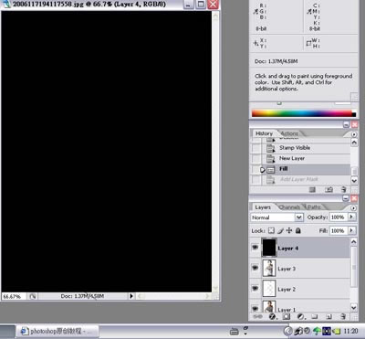 7.新建一個空白圖層,填充黑色,這是給後面黑色陰影圈作鋪墊