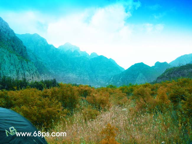 2、打开一张白云素材,拖进来,然后加上图层蒙版用黑色画笔把天空部分擦出来,效果如图5。