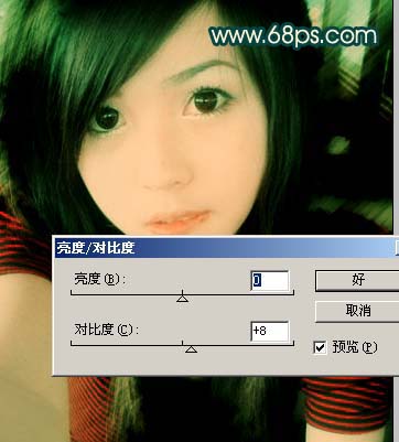 6、创建亮度对比度调整图层,参数及效果如图8。