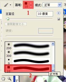 5、然后点属性表中的小三角形,在弹出的窗口找到我们刚才定义的笔刷。