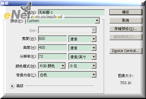 第一步:执行【文件-新建】命令,建立一个大小600×400像素,分辨率72像素/英寸,颜色模式RGB颜色,背景为白色名为中秋的文件;效果如[图1]所示;