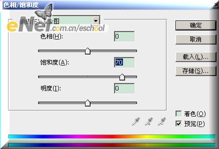第二步:打开素材1,用套索工具(快捷键为L)或魔棒工具(快捷键为W)抠出小天使,执行【编辑-变换-水平翻转】命令,然后放到中秋文件的左下角位置,系统默认为图层1,执行菜单【图像-调整-色相饱和度】命令,饱和度设置为 70,设置图如[图2]所示,得到效果如[图3]所示;
