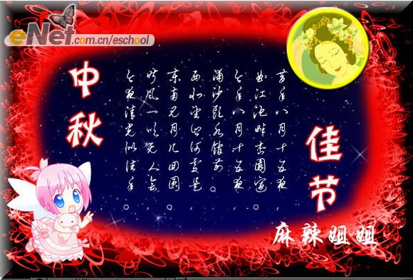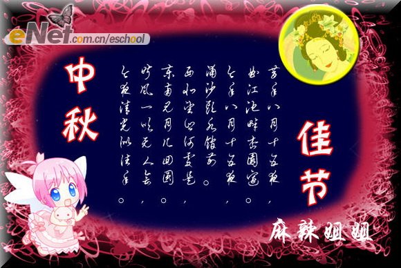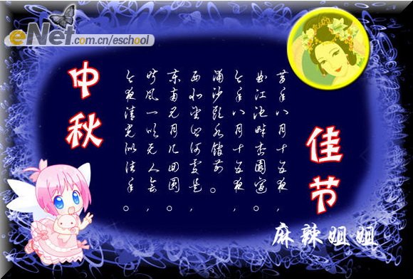 马上就到中秋了,中秋是团圆的节日,是我们中国的传统节日,节日到了,做一个动画签名,做了教程,让大家分享,做的不好,大家一起交流噢!