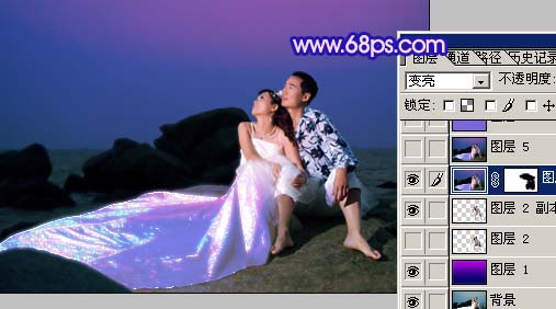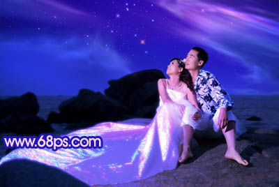 Photoshop蓝色夜空海景婚纱照片