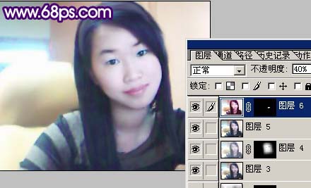 3、新建一个图层,盖印图层,把图层混合模式改为“滤色”,图层不透明度改为:40%,加上图层蒙版,纸保留脸部位置,其它的地方用黑色画笔擦掉。