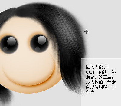 4、因为太淡了,按Ctrl J把高光图层复制三层,然后把所有高光图层合并,适当顺着头发的走向变换下角度。