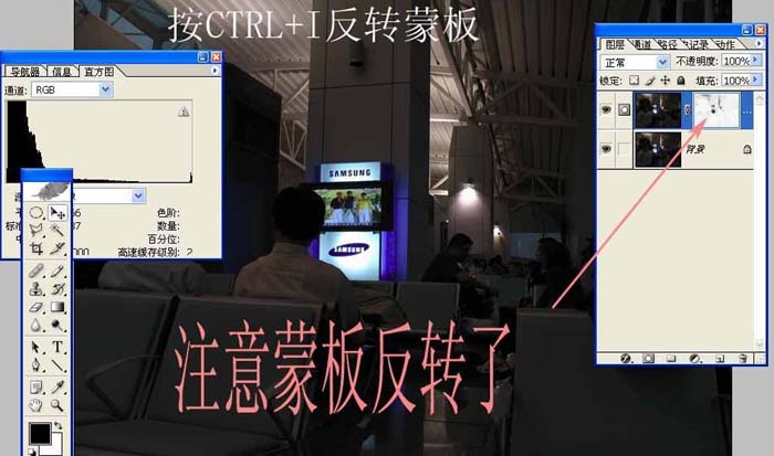 6、蒙板出现后,按CTRL I,我们会发现蒙板反转显示了。