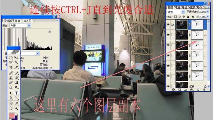 8、连续按CTRL J,直到亮度合适,我这张图按了5次,我们发现,亮的地方没有更亮到溢出,但暗处得到了亮度补偿。
