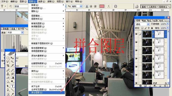 9、连再往下大家也许就熟悉了,那就是合并图层。