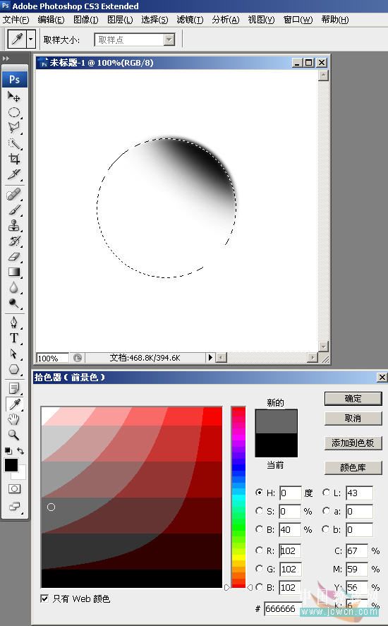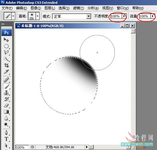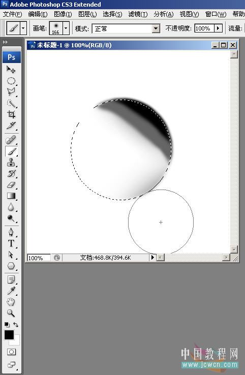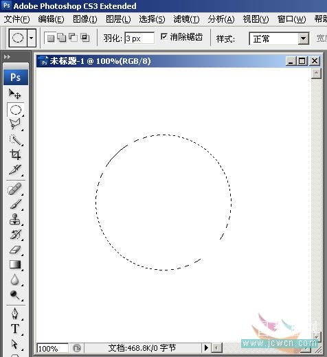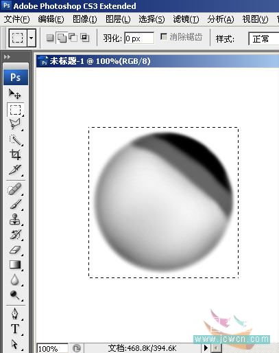 1,新建400×400文件,默认其它选项,然后画一个圆形选区