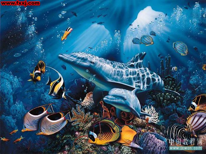 16,好了,现在可以检验自己制作的画笔效果了。新建一个尺寸大些的文件,填充较深色背景,然后选取不同的前景色,在图中绘制(可以按方括号键增减笔头直径。左方括号减小,右方括号加大;还可根据实际情况调整画笔的不透明度,以求达到最佳效果),看看,用画笔从下往上一拖即可;效果还不错吧!^_^如果找一幅海底图片绘制,效果更佳!