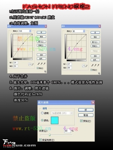 本教程主要是介绍蓝色格调非主流色的调制方法,主要思路:使用滤镜磨皮,然后调曲线选择需要更改的颜色通道,最后加上一些装饰效果就可以制作出自己喜爱的效果。