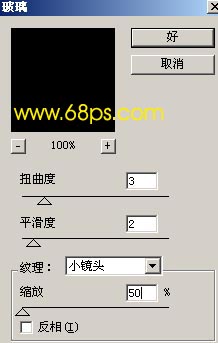 3.按Ctrl D 取消选区执行菜单:滤镜 > 扭曲 > 玻璃,参数设置如图3,效果如图4