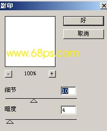 4.执行菜单:滤镜 > 素描 > 影印,参数设置如图5,确定后执行菜单:滤镜 > 锐化 > 锐化,然后再按Ctrl F 锐化10次左右效果如图6