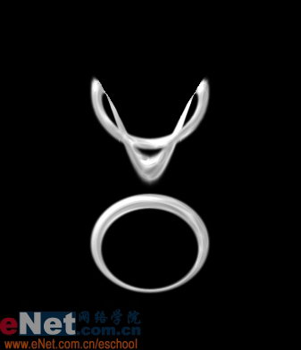 新建一个文件,背景为黑色。新建一个图层,命名为指环,用椭圆工具画一个椭圆选区,填充白色,再画一个小椭圆选区,按Delete键删除,形成指环。