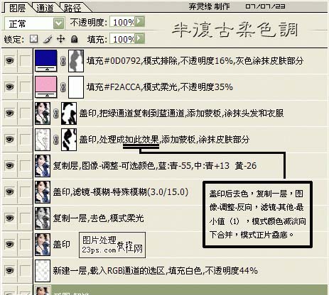 9.新建一个图层填充颜色:#F2ACCA,图层模式改为“柔光”,不透明度改为:35%