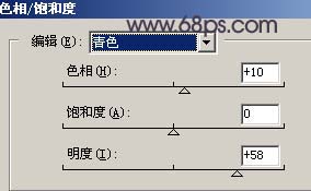 3.创建色相/饱和度调整图层,参数设置如图4-6,确定后加上图层蒙版用黑色画笔工具把人物部分擦出来效果如图7