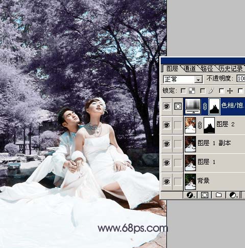 Photoshop婚纱调色教程:梦幻蓝色