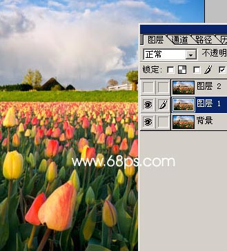 1.打开原图按Ctrl J复制两层,把最上面的图层隐藏,回到图层1如图1