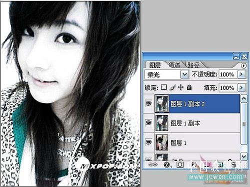 步骤5 选择 图层1副本 点ctrl j 在复制一个图层。 设为 柔光