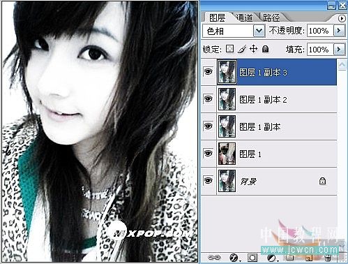 步骤6 选择 图层2副本 点ctrl j 在复制一个图层。 设为 色相