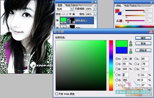 步骤14 突然感觉蓝色不太好看,我还想继续改变颜色。可是再重做一遍太麻烦了吧。别担心, 片|QQ空间|我有办法。只要双击颜色调整图层图标,在打开的混色器里选择一个喜欢的颜色就可以了。