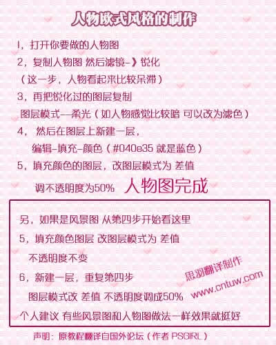 本教程主要是介绍一种欧洲古典风格签名效果,制作的时候不需要任何素材,重点在于调色。过程非常简单,给人物简单的磨皮,再适当调整对比度,然后直接填充深蓝色,再改变图层混合模式几不透明度就可以了!