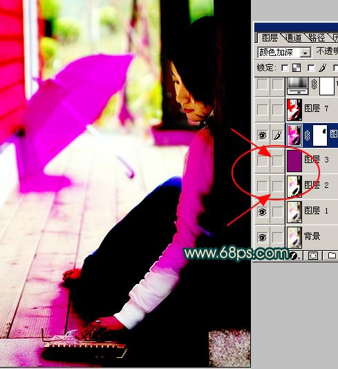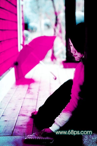 3.新建一个图层填充颜色:#8A0571,然后把图层混合模式改为“颜色加深”,效果如图4