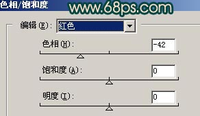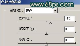 6.按Ctrl U调色相/饱和度,分别对红色和青色进行调整参数设置如图8,9