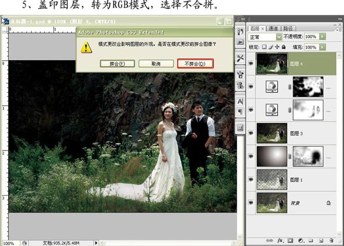 5.盖印图层,转为RGB模式,选择不合并。