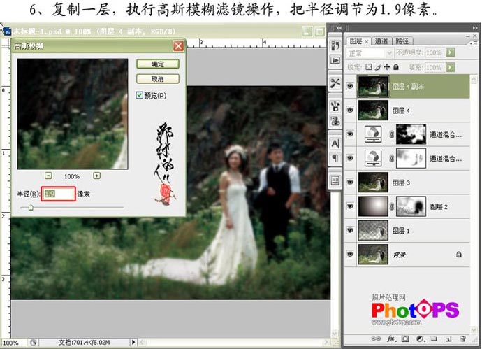 6.复制一层,执行高斯模糊,数值调节为1.9像素