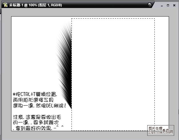 4.按Ctrl T变换位置,再用矩形选择工具选取一边,然后按Delete删除,做好羽毛的一边,另一边复制就可以了!