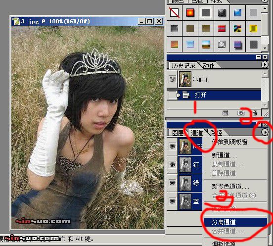 1.打开图片,直接选通道,下拉菜单选分离通道