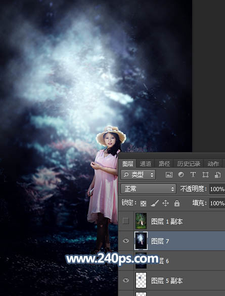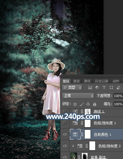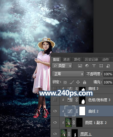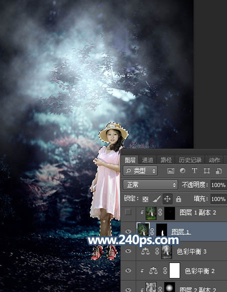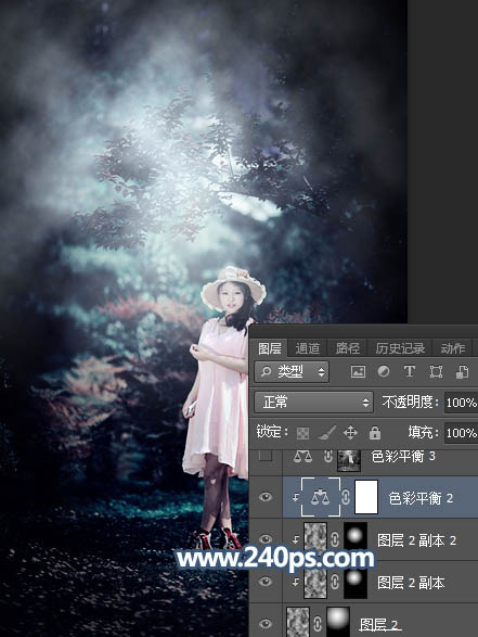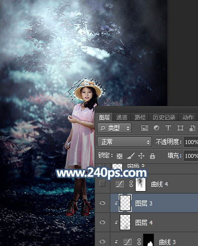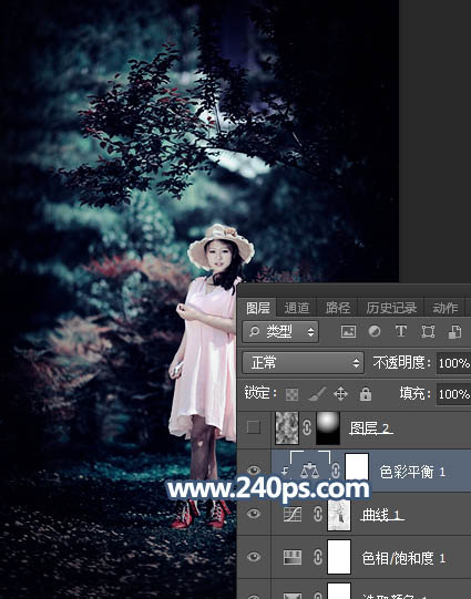 Photosho调制出暗调冷色调树林中人物图片